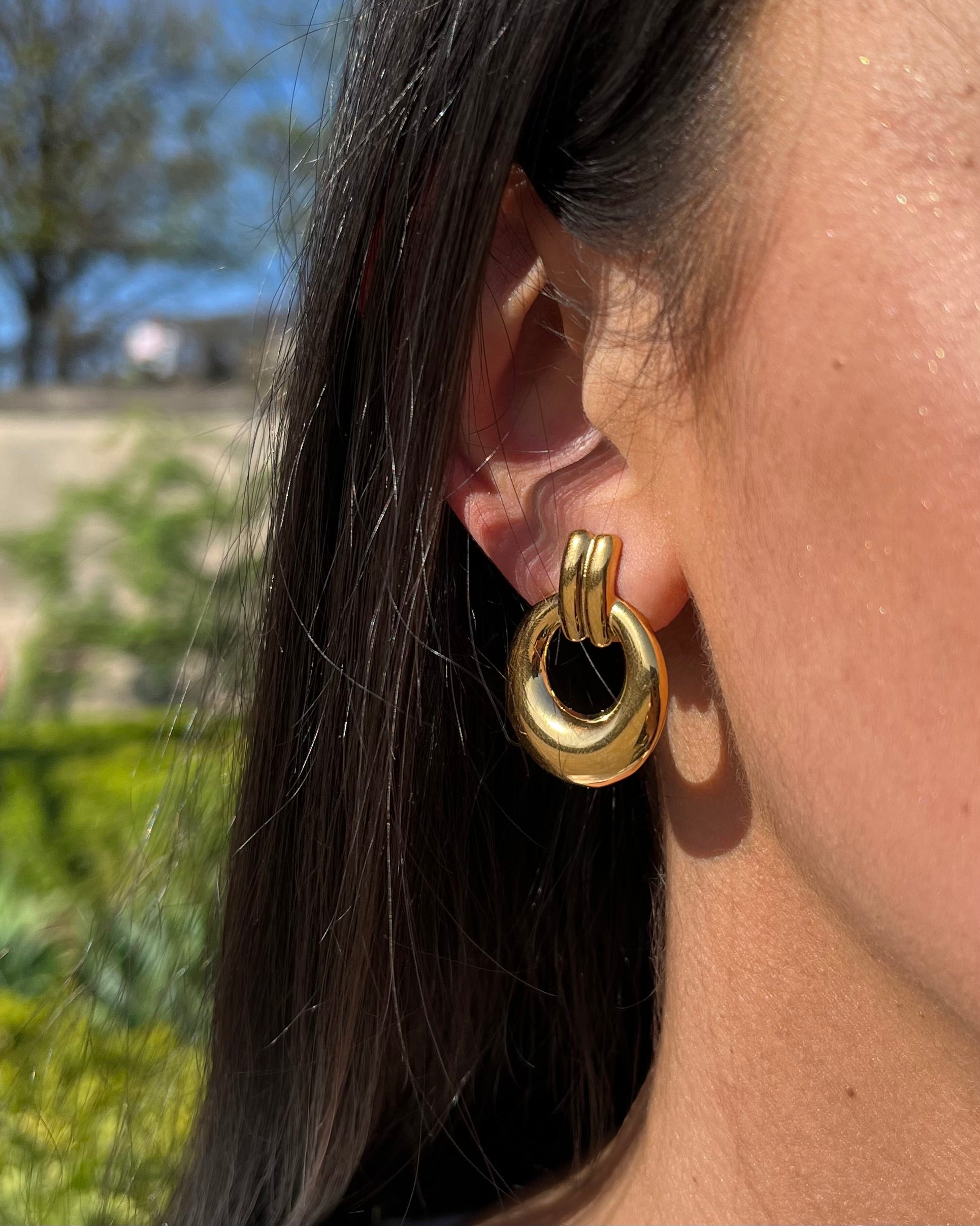 Boucles d’oreilles dorées au design circulaire audacieux, parfaites pour un look chic et affirmé. Leur finition brillante apporte une touche de sophistication à toutes vos tenues.